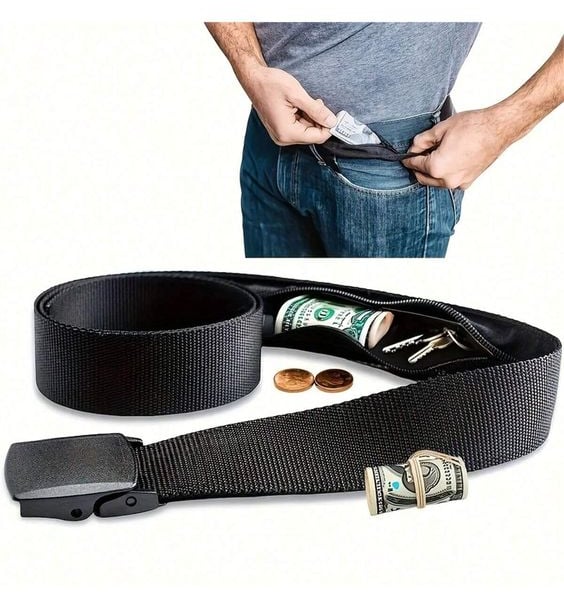 حزام مقاوم للسرقة مع جيب مخفي بسحاب لتخزين النقود والمفاتيح بأمان. مصنوع من مواد متينة ومناسب للسفر والأنشطة اليومية، يوفر راحة وأمان في تصميم أنيق يناسب الجميع